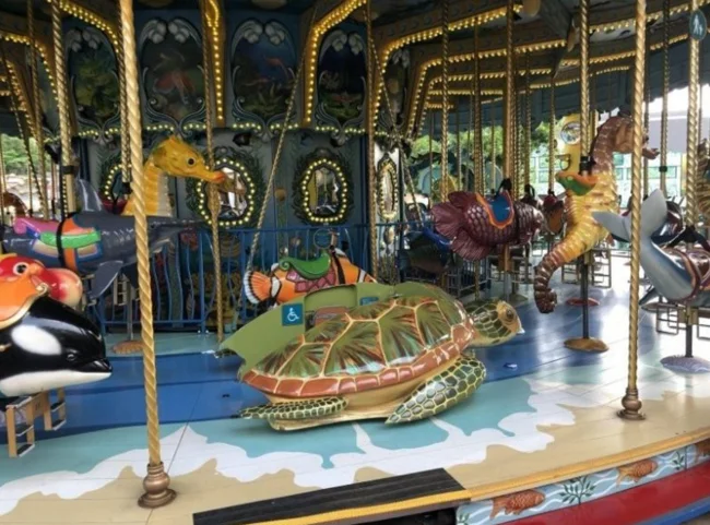 Обратите внимание, что на этой черепахе на карусели могут кататься дети с ограниченными возможностями. Гонконг