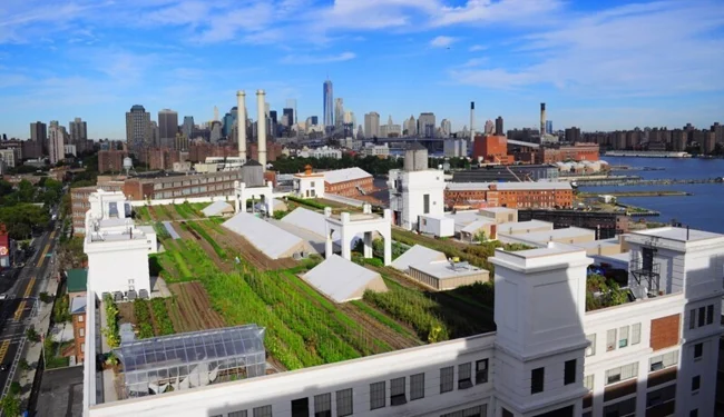 С 2010 года Brooklyn Grange снабжает Нью-Йорк овощами, выращенными на крышах. Основная ферма расположена в Квинсе, а вторая находится в Бруклине. Вместе они занимают около 10 000 м² и производят до 18 000 кг урожая в год. Здесь же находится крупнейшая городская пасека, а сама ферма считается самым большим в мире почвенным хозяйством на крыше.
