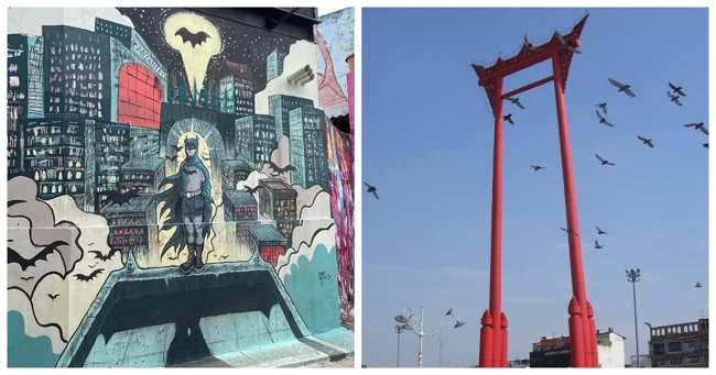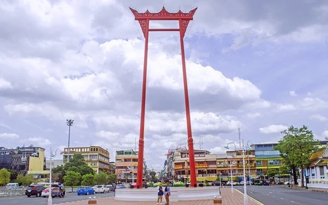 28-метровые качели рядом с храмом Ват Сутхат были построены в 1784 году по приказу короля Рамы I. Веками они играли ключевую роль в церемонии, символизирующей индуистский миф о Шиве, который стоял на горе, пока змеи пытались его столкнуть. Участники в богатых головных уборах раскачивались так высоко, что могли зубами схватить мешочек с монетами, подвешенный на 25-метровой высоте. Успех означал, что мир так же устойчив, как и легендарный Шива.