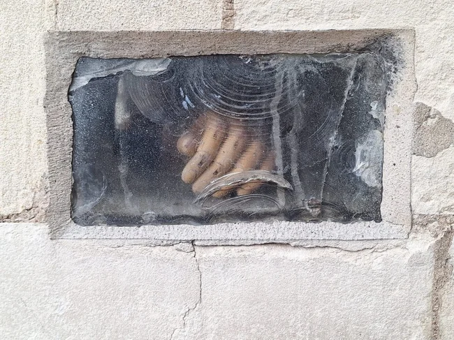 Первое здание, которое видят посетители Тауэра после прохождения контроля, — это Башня Байворд, построенная в XIII веке по приказу Генриха III. Одна из её самых загадочных деталей спрятана у всех на виду: за мутным стеклянным кирпичом находится человеческая рука. Никто не знает, как и почему она там оказалась. Даже стражники, охраняющие крепость, не могут дать ответа.