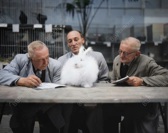 Судьи за работой на выставке кроликов в Амстердаме, 1957 год.