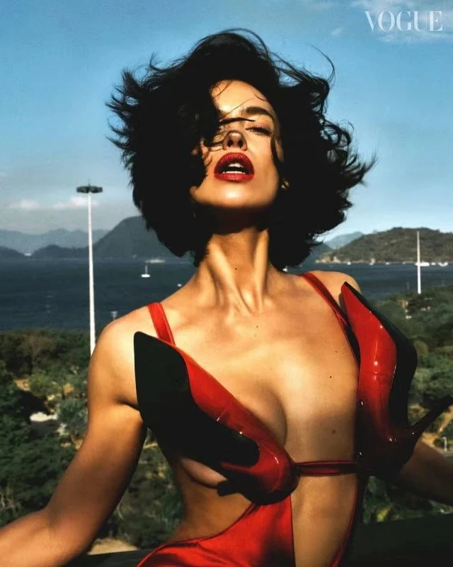 Только недавно мы рассматривали фото Ирины Шейк без фотошопа - так сказать, все натуральное. А тут у нее странная фотосессия для бразильского Vogue в одежде итальянского бренда.