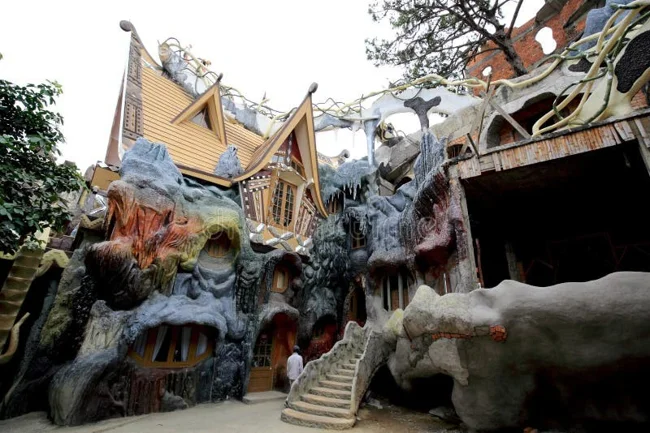 Яркий пример безумного креатива архитектора - это вьетнамский отель, который продолжает обрастать всё новыми и новыми деталями.