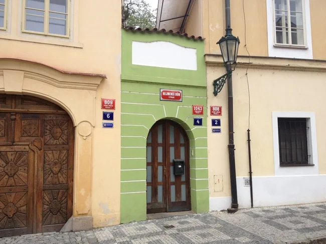 В сердце чешской столицы, зажатый между двумя обычными зданиями, притаился архитектурный курьёз — дом уже стандартной двуспальной кровати (всего 2,2 метра в ширину).
