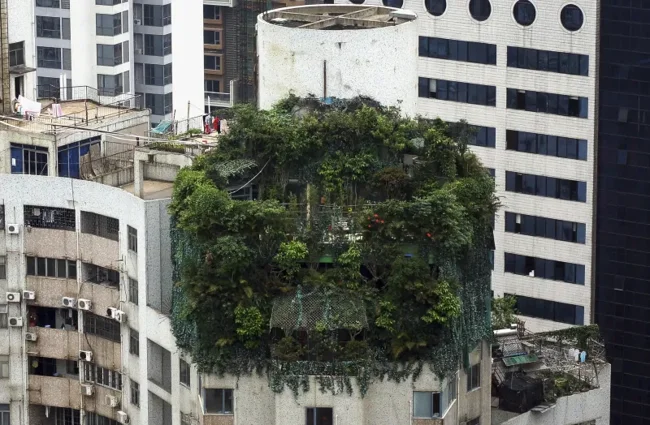В самом сердце Гуанчжоу, среди стеклянных небоскрёбов, притаился удивительный арт-объект — джунгли на высоте 60 метров. С 2014 года этажи одной из жилых башен постепенно превращаются в вертикальный лес, бросая вызов урбанистическим нормам.
