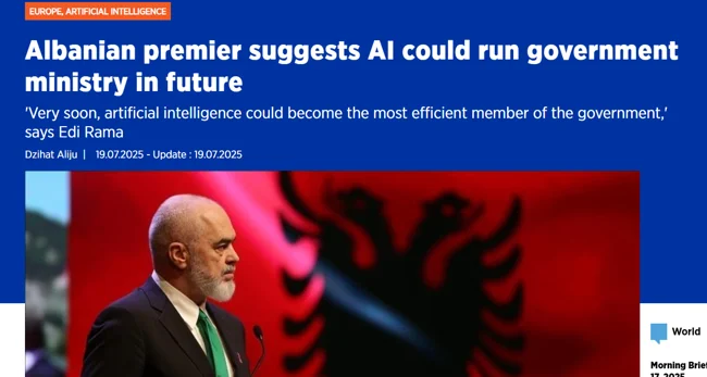 Албания может стать первой страной в мире, где управление государством частично возложат на искусственный интеллект. Идею вынес на обсуждение премьер-министр Эди Рама, отметив, что в перспективе избиратели могли бы даже «назначить» в совет министров алгоритм ИИ.