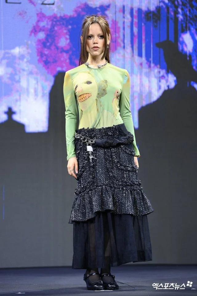 В промо-туре второго сезона «Уэнсдей» актриса и её стилист показали стиль haunted doll — кружево, рюши и банты с лёгкой мрачностью. Вдохновением стали старые фарфоровые куклы: романтично, таинственно и чуть пугающе.