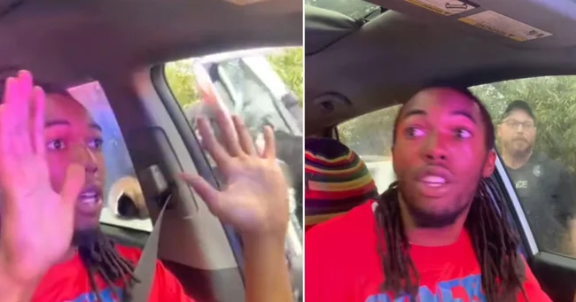 Затем водитель просит показать закон, после чего полицейский говорит, что они покажут его, как только он согласится выйти из машины. Мужчина просит позвать «начальника», после чего ситуация резко обостряется.
