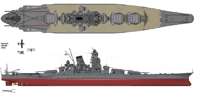 Гибель в тени собрата. Как погиб Musashi, один из самых крупнейших линкоров в мире? (9 фото)