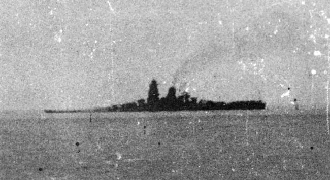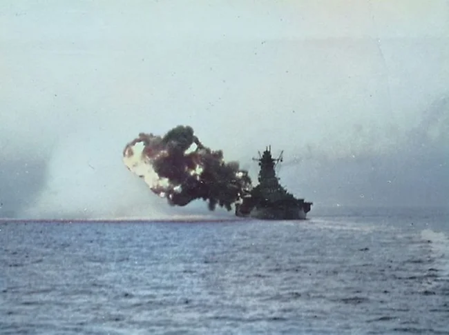 Последняя фотография IJN Musashi. Виден сильный дифферент на нос
