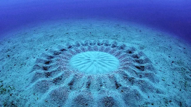 Разгадка пришла лишь в 2011 году, когда подводный фотограф, снимавший эти круги, совершенно случайно запечатлел и самого «автора» проекта. Присмотритесь к снимку: в самом центре конструкции, примерно на позиции «три часа», вы увидите настоящего творца.