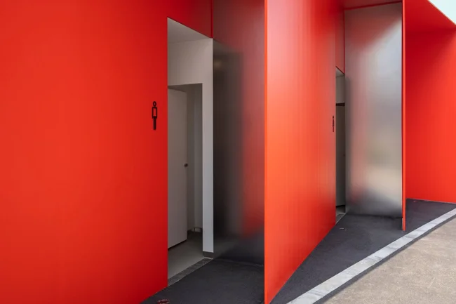 Старый туалет в районе почти не использовался, поэтому его решили заменить на современное и более привлекательное пространство. Новый светлый и открытый павильон не только удобен, но и вечером подсвечивает парк, превращаясь в своего рода фонарь.