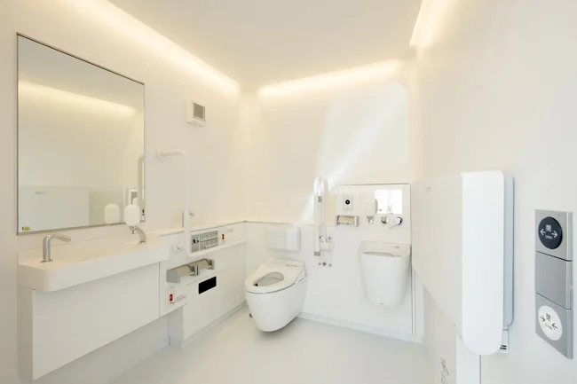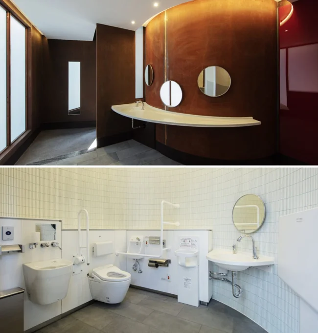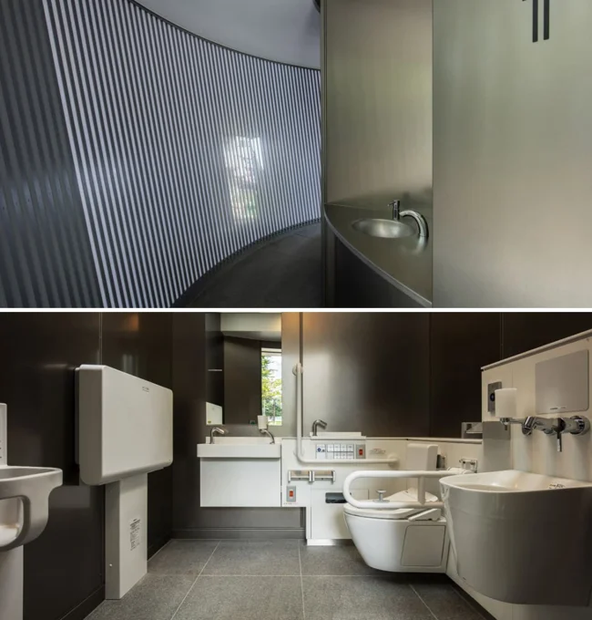В парке Сёто создали «деревню туалетов» — пять отдельных деревянных павильонов, скрытых среди зелени и соединённых лесной тропой. У каждого строения свой интерьер и планировка. Такой формат делает пространство открытым, удобным и позволяет уединиться с природой (что вполне естественно, когда речь идёт о туалете).