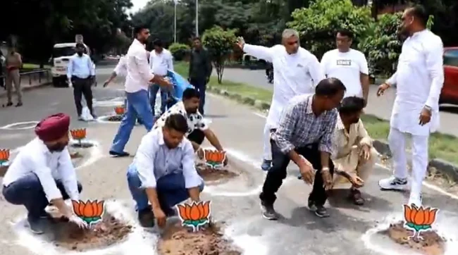 В этом городе особенно трагичное состояние дорог, и многие годы никак не могли привлечь к этому вопросу внимание. И все вылилось вот в такой мирный, но яркий протест. Они рисовали символ лотоса внутри выбоин и заплаток, а там, где рисовать было не на чем, то ставили вырезанные картинки. Многие специально принесли с собой картинки в цветах оранжево-зеленого лотоса, который является символом правящей партии Бхаратия Джаната Парти. Чтобы у нее якобы совесть появилась – вот ваши не сделанные дела!