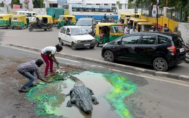 Самым известным из таких творцов стал Баадал Нанджундасвами, он перекрашивает ямы в настоящие произведения уличного искусства. В них плавают крокодилы, оказываются ямы со змеями. Он даже деньги реалистичные рисовал в луже, чтобы люди нагибались.