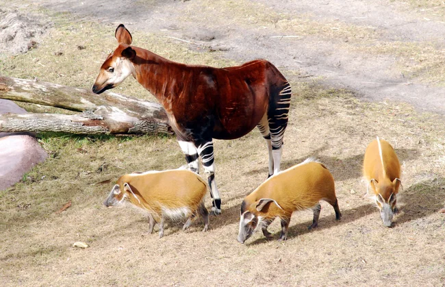 Погружаемся в сказочный бестиарий. На фото окапи и кистеухие свиньи.