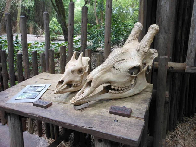 Череп окапи слева, череп жирафа справа. Даже беглый взгляд сразу же заметит странное родство костей.