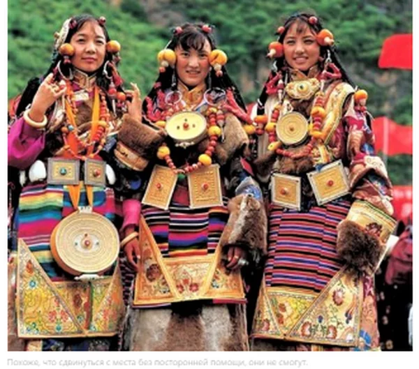 В некоторых случаях вес украшений некоторых модниц доходит до 50 кг. В таком костюме женщина даже не может передвигаться и часто ей на помощь приходят члены семьи.