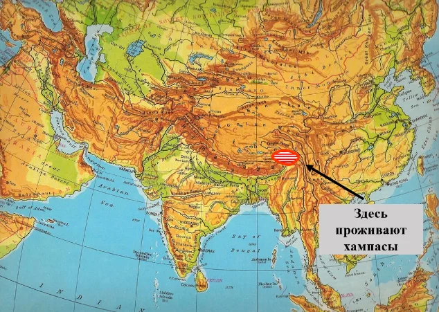 Многое указывает на то, что жители Кхама, по крайней мере большинство из них, имеют монгольское происхождение. А это означает, что на этой территории, богатой на полноводные реки, ущелья и горные хребты, хампасы проживают уже несколько тысячелетий.