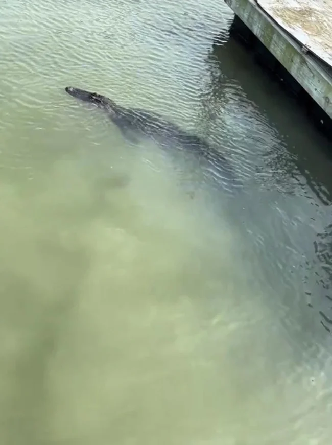 Атанс пояснила, что любопытная сцена произошла возле ресторана Skull Creek Dockside. Рыбаки разделывали улов и выбрасывали остатки в воду, что и привлекло хищников.