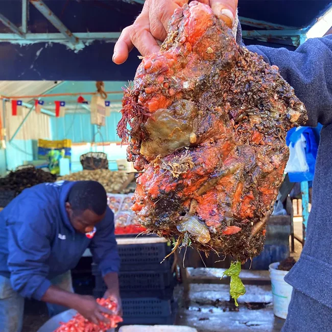 Процесс выковыривания пиур из оболочки. Мясистую часть «живого камня» называют «выменем».