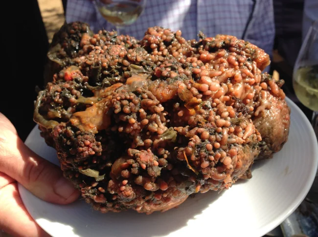 То, что чилийцы употребляют в пищу — по факту весь внутренний мир животины. Причём не примитивный, а полноценный, со всеми органами. У них даже позвоночник есть! Точнее, был. Так, давайте-ка разбираться, а то ничего не понятно!