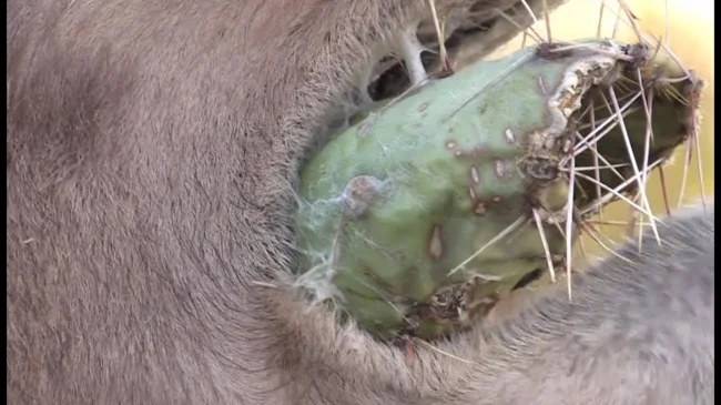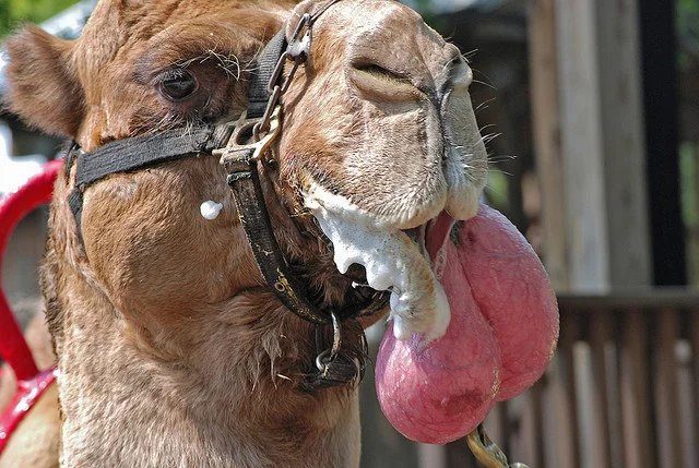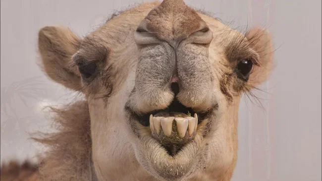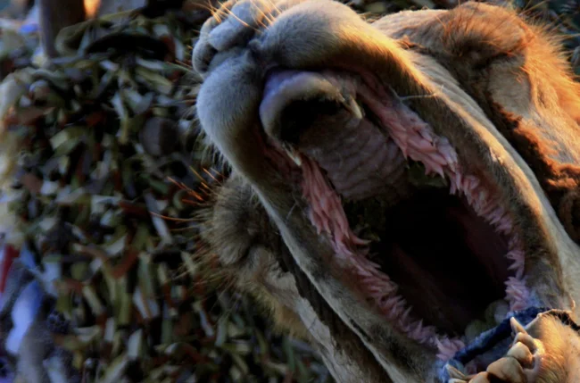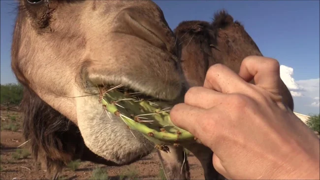 30 широких и плоских зубов способны пережевать почти всё что угодно, особенно в тандеме с мощной челюстной мускулатурой. Жёсткие покровы и большая часть колючек перетираются и рвутся до тех пор, пока они не станут безопасны. Ещё 4 зуба, мощные и крупные клыки, практически не участвуют в обезвреживании растительной защиты. Они нужны для самозащиты и драк с другими верблюдами. Поэтому не вздумайте кусать верблюда! Ответка вам очень не понравится!