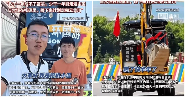 Парень на экскаваторе покоряет Китай (1 фото + 5 видео)