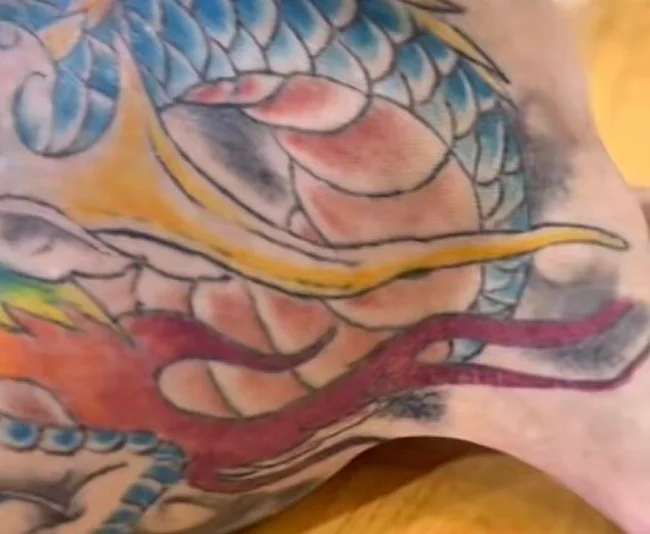 Lv, выполнивший «собачью работу» татуировщик, рассказал что татуировка была сделана в июне прошлого года. И что хозяин собаки настоял не ставить анестезию, заявив, что мексиканская голая порода собак менее чувствительна к боли. В итоге мастер согласился на работу. В тот момент он не считал это жестоким обращением с животным, хотя и беспокоился о псе. Хотя все же вызывает сомнение, что любой пес может просто выдержать многократные мелкие уколы прямо по коже.