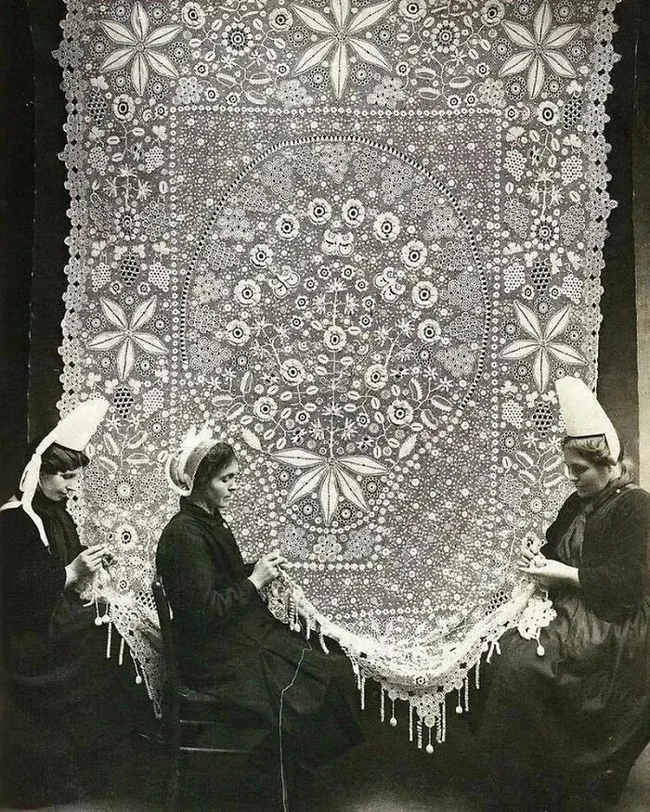 7. Три кружевницы за работой. Бретань, Франция, 1920 год