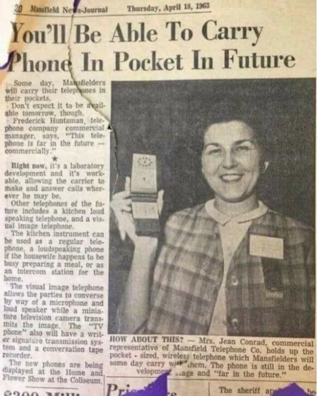 13. Статья в газете за 1963 год: «В будущем вы сможете носить телефон в кармане»