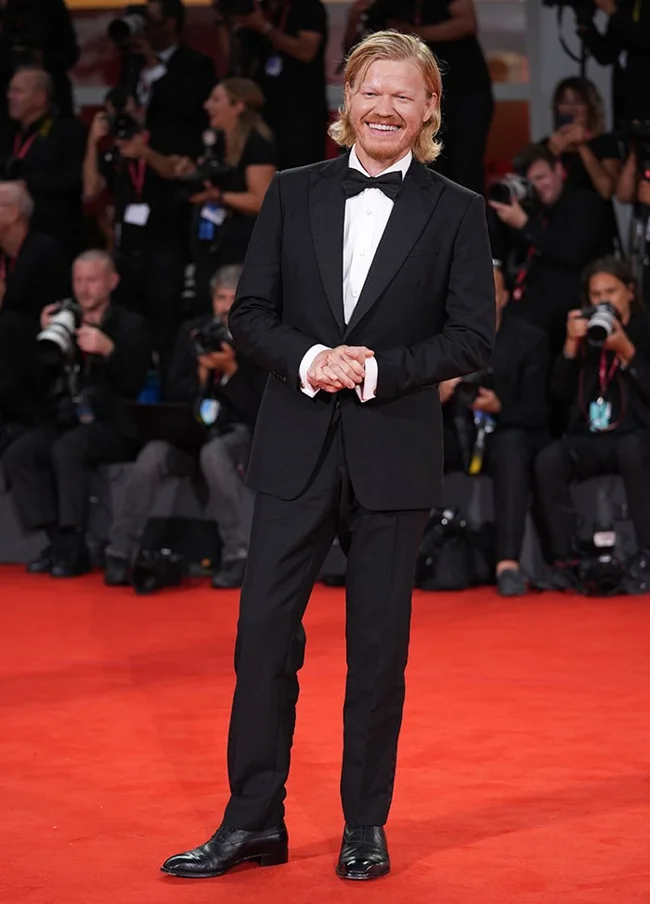 Джесси выбрал классический костюм на премьеру фильма «Бугония», в котором сыграл сторонника теории заговора. Картина Йоргоса Лантимоса сорвала 6-минутные овации на кинофестивале.