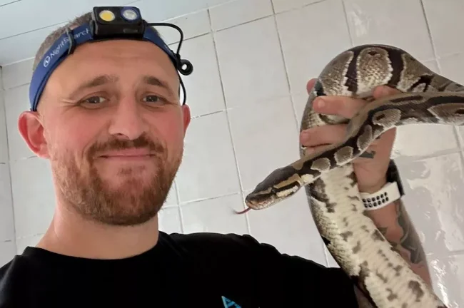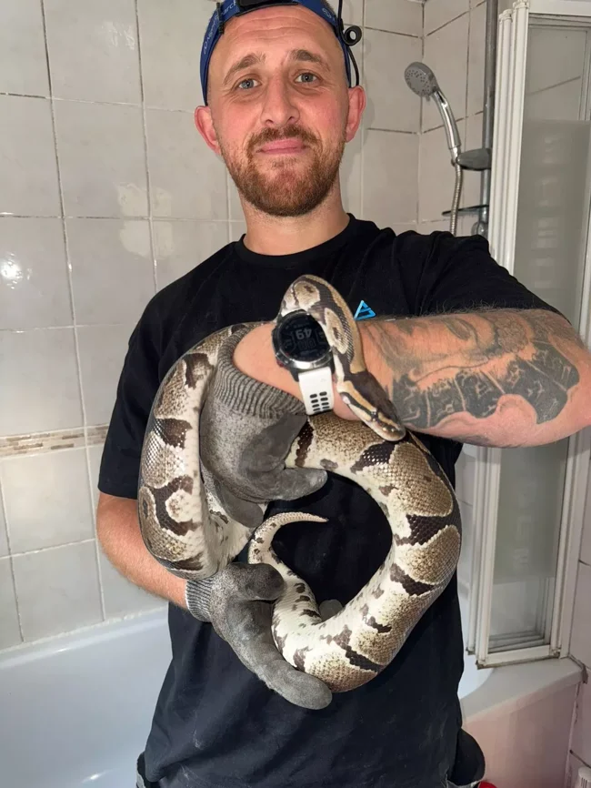Мужчина сразу вызвал специалистов компании Invicta Environmental Ltd, ведь рептилия спряталась в коробке с канализационной трубой. На место выехала команда во главе с Норманом Смитом, которая безопасно изъяла змею.