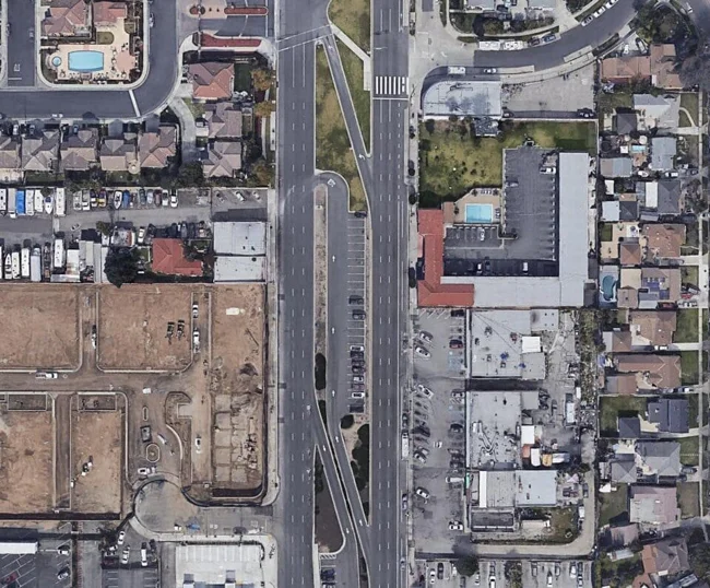 15. Парковка посреди проспекта без пешеходных переходов, ведущих к ней, Лос-Анджелес