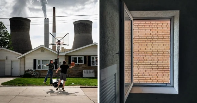 8. Дети играют в баскетбол возле угольной электростанции, Город Пока, Западная Вирджиния, США