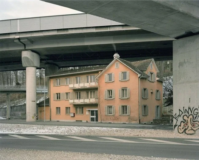 Жилой дом под автомобильным мостом. Цюрих, Швейцария.
