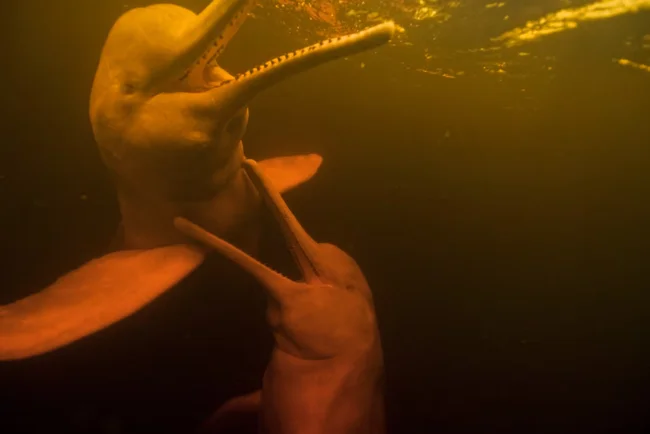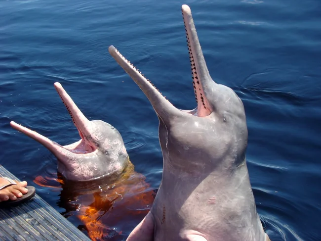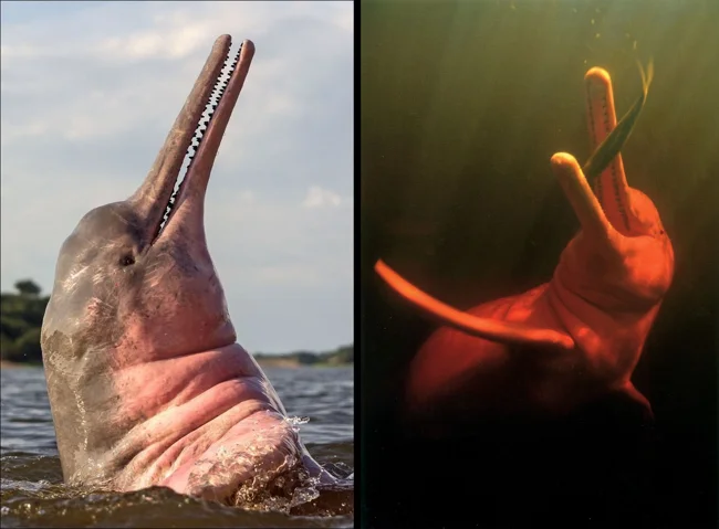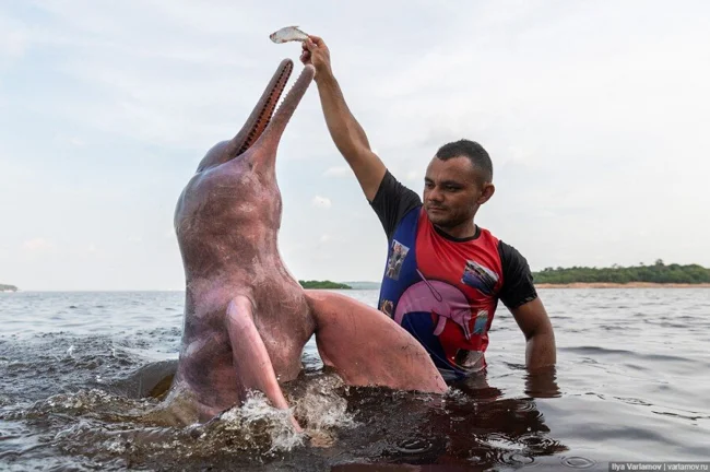 Раньше амазонских дельфинов считали оборотнями, что принимают обличье красивого юноши. Ночью они выходили из воды, чтобы соблазнить местных красавиц и увести в подводное царство. А днём превращались в зверя, чья кожа розовела от поцелуев сотен девушек и лучей закатного солнца. Увы, наука даёт куда более жестокие и прозаические объяснения.