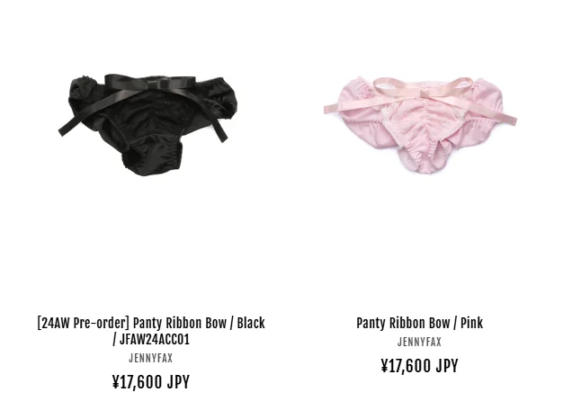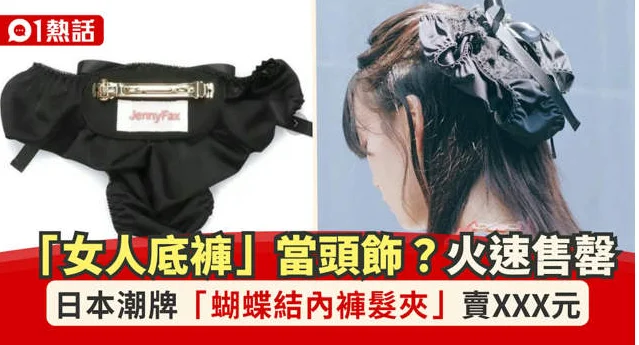 Японский модный бренд JennyFax привлек к себе тонны внимания своей новейшей коллекцией аксессуаров для волос, которые «сделаны» из женских трусиков с приклеенной к ним заколкой для волос. Компания делает ставку, что ношение женских трусиков в волосах скоро станет модным трендом. Берутся только самые красивые трусы из шелка, чтобы украшение выглядело дорого и презентабельно.