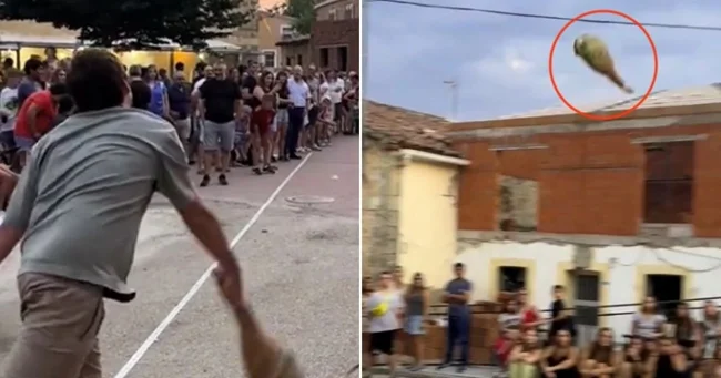 В Испании прошёл чемпионат по метанию хамона (3 фото + 1 видео)