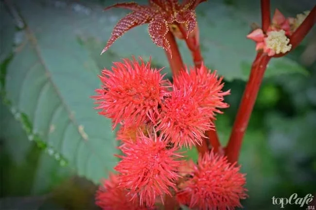 Клещевина занесена в Книгу рекордов Гиннесса как самое смертоносное растение в мире. Семя клещевины содержит 40%-60% масла, а также сильнейший яд — рицин и алкалоид рицинин. Достаточно несколько крупинок, чтобы убить человека. Семена клещевины были обнаружены в египетских гробницах тысячи лет назад. Масло использовалось для заправки ламп, так как оно медленно горело. Из клещевины делаю известное всем касторовое масло. Это самое простое слабительное средство. В результате обработки яд рицин распадается на составляющие. Отравление клещевиной почти всегда приводит к смерти. Это связано с тем, что рицин быстро разрушает белки в организме человека. Этот процесс не остановить. Выжившим людям наносится непоправимый ущерб.