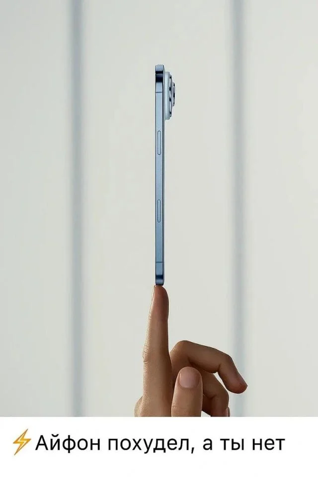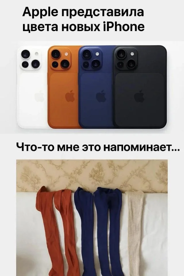 На прошлой неделе показали новый iPhone 17. Пользователи, как обычно, обсуждают спорный дизайн смартфонов, новую модель — тонкий iPhone Air, шнурок для смарфтона за $79, а также новый цвет — оранжевый. Только лучшие шутки и мемы.