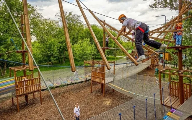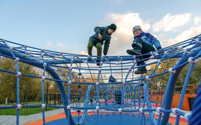 Для детей сделали более 50 площадок с лазалками, качалками, качелями, горками и полосами препятствий.