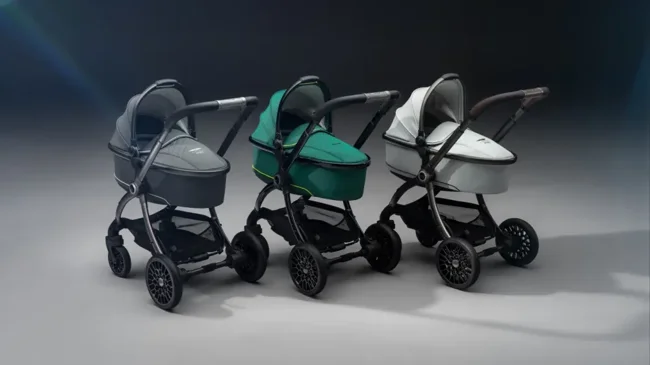 Один из вариантов оформления коляски выполнен в сочетании характерного зелёного и лаймового цветов, которые применяются на серийных Aston Martin. Два других, в различных оттенках серого, должны напоминать как о винтажных интерьерах автомобилей, так и об активном применении карбона. В отделке используется та же самая кожа, что и в салонах роскошных британских машин.
