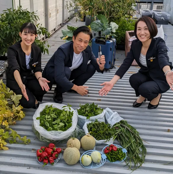 Он посадил всего 25 видов овощей и фруктов, в том числе баклажаны, дыни, томаты. Гостям очень нравится экологичная задумка директора, это очень по-японски. Хотя и по сей день 80-90% гостей отеля в духе «красивого современного японского стиля» — иностранцы. Отсюда и избыток чемоданов. В среднем в небольшом отеле брошенный чемодан появляется один-два раза в месяц. Среди них есть и те, которые были повреждены и владельцы не смогли их починить, и те, которые просто заменили на новый во время поездки за город.