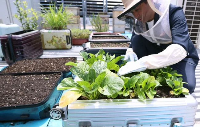 Отель Niwa Tokyo, расположенный примерно в 200 метрах от станции JR Suidobashi, решил выращивать в чемоданах овощи и цветы. Генеральный директор Сатоси Эбинума отвел под это место на крыше отеля. При этом практикуется экологическое выращивание без удобрений, чтобы потом использовать в блюдах в ресторане отеля. А чтобы сэкономить еще больше, то в качестве кадок и кашпо поставили брошенные чемоданы.