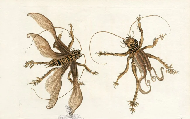 Биологи по достоинству оценили внешний вид и плотоядные наклонности сверчка, поэтому восторгаются им уже более 200 лет. Этот рисунок — иллюстрация из «Сборника Натуралиста», вышедшего в 1795 году.