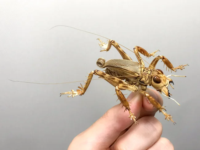 Помимо чрезвычайно длинных усиков и слегка шизофреничных лапок, сверчки обладают ещё и спиралевидными крыльями. Когда насекомое не летает, оно аккуратно сворачивает леталки в спирали, которые не занимают много места и не мешают охотиться. И даже в развёрнутом состоянии крылья всё ещё украшены изящными спиральными узорами на кончиках.