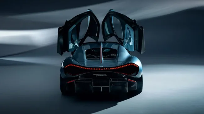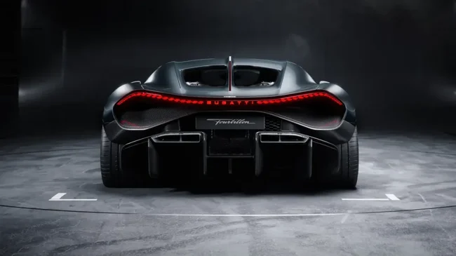 Bugatti Tourbillon представили год назад. Его силовая установка включает 8,3-литровый 1000-сильный атмосферник V16, разработанный при участии Cosworth, и три 250-киловаттных электромотора, которые суммарно обеспечивают ещё 800 л.с. ДВС сочетается с новым восьмиступенчатым «роботом». Батарея ёмкостью 24,8 кВт·ч позволяет проехать на электричестве более 60 километров. Товарные машины начнут собирать в следующем году.