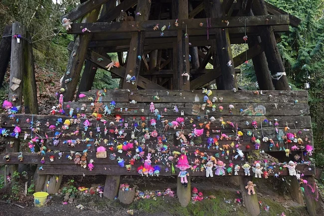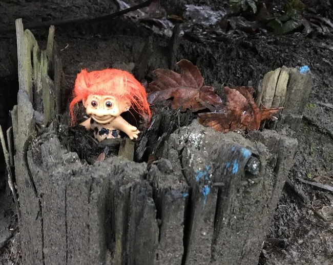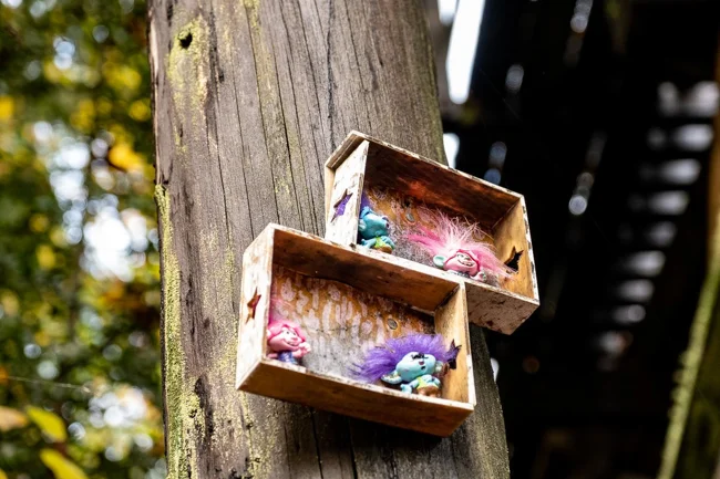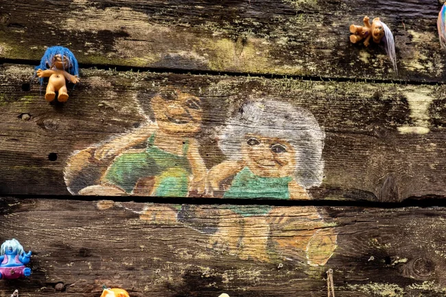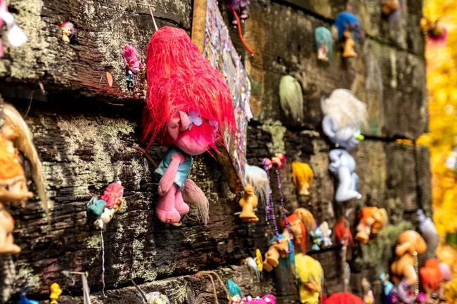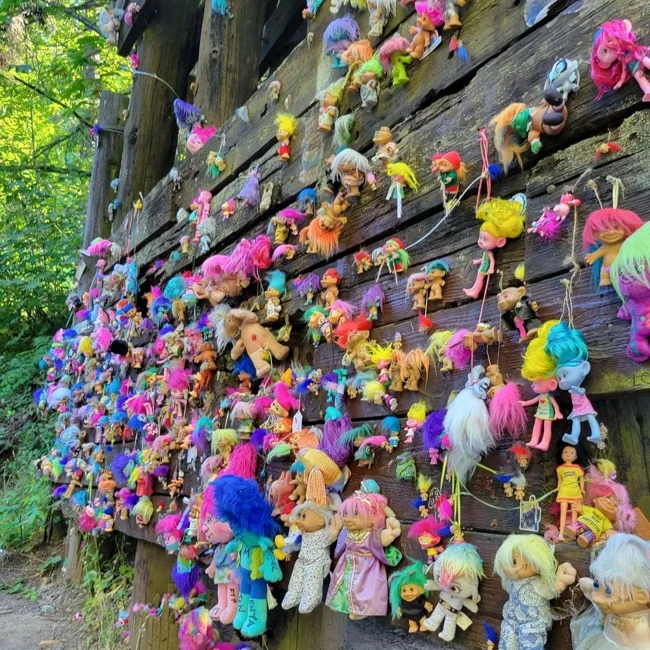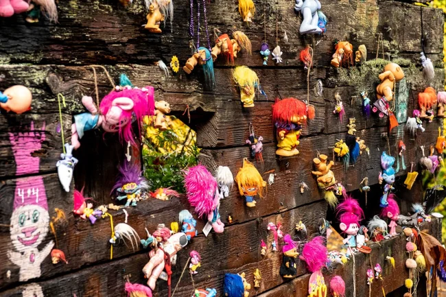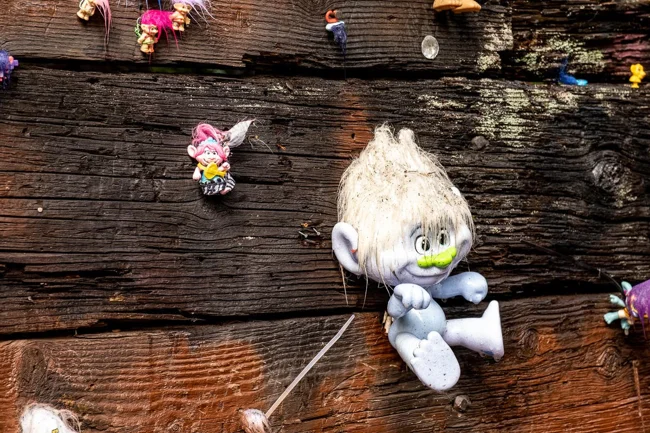 Годами местные жители прикрепляют кукол-троллей к дереву, а некоторых просто рисуют их краской прямо на досках. Численность этой колонии разноцветных существ постоянно колеблется, поскольку некоторые не самые порядочные люди периодически похищают бедолаг.