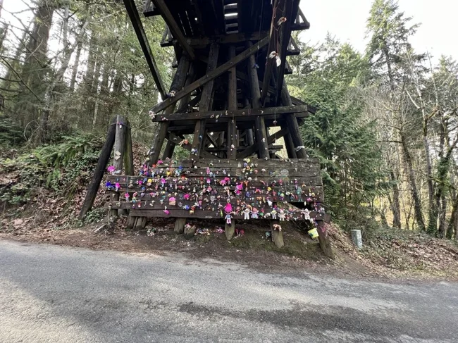 Под этим деревянным железнодорожным мостом в Портленде обитает множество троллей.